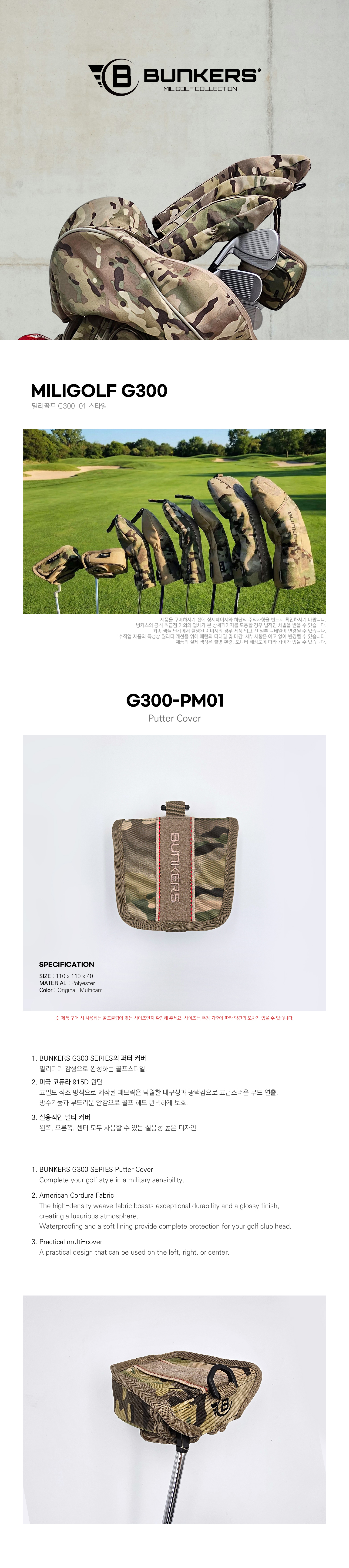 [특가] 벙커스 퍼터 헤드 커버 G300-PM01 프리미엄 밀리터리 골프